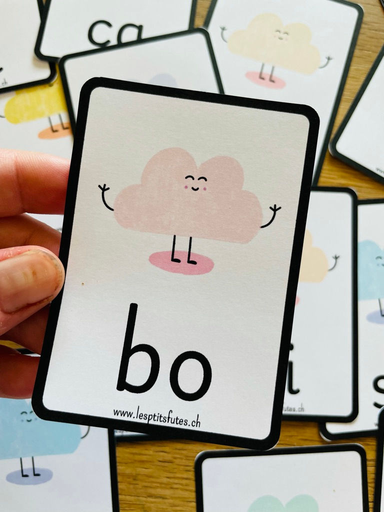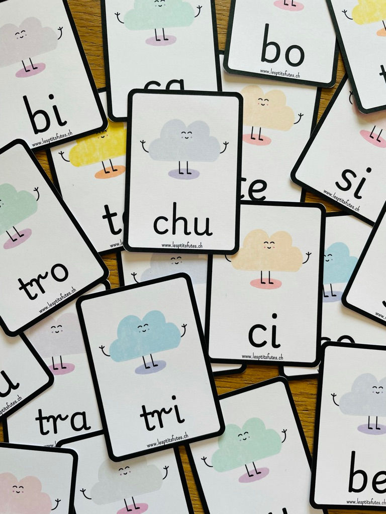 100 cartes de lecture de syllabes en lettres scriptes ☁️